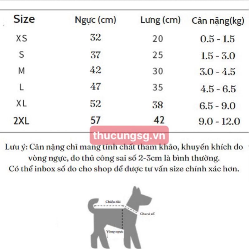 Quần áo chó mèo cao cấp dành cho chó mèo từ 1-12kg (Tùy theo giống, chính xác tham khảo sô đo để chọn size)