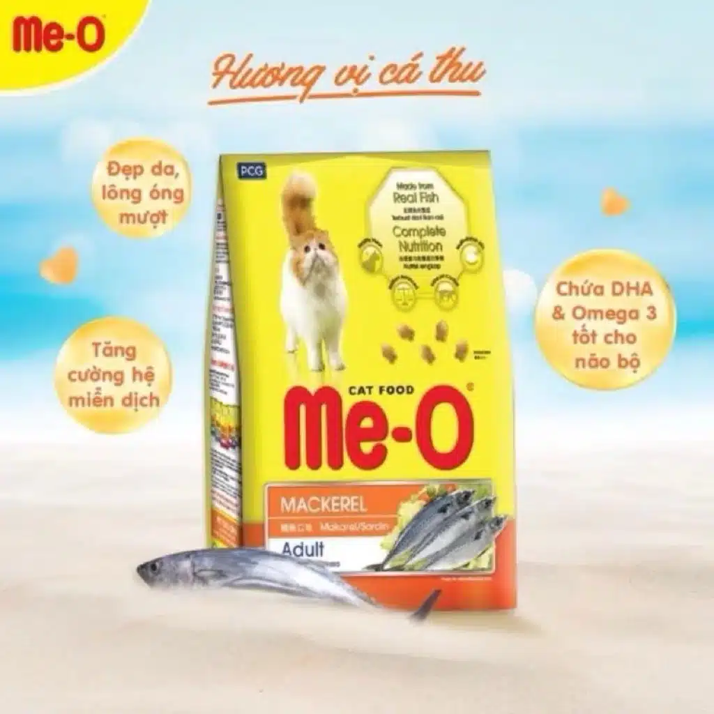- Đồ Ăn Cho Mèo Me-O Cá Thu cải thiện thị giác. Taurine là axit cần thiết cho chức năng mắt và giúp cải thiện thị giác của mèo.